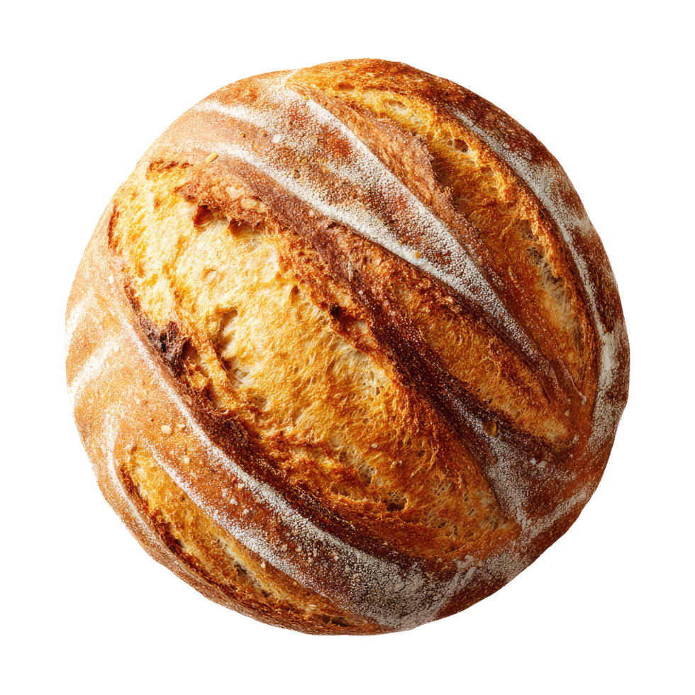 Our signature loaf — tangy, golden, with a crackling crust and an open, chewy crumb.